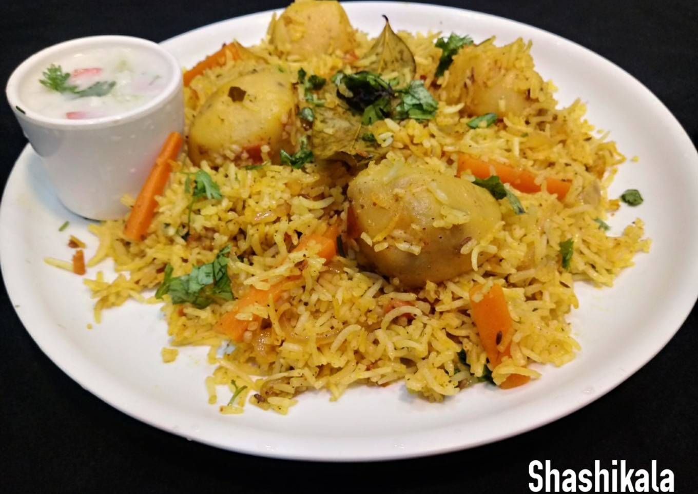 - Take off the pressure & your dum aloo biryani is ready to be served. Garnish with coriander & serve with raita.