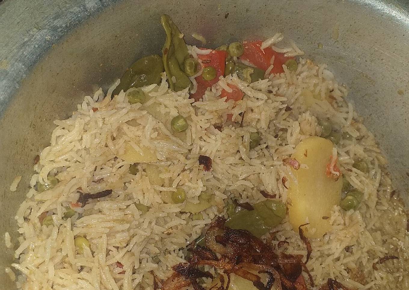 - Phir rice ko dam lagade or uper sy fried onion dal dein aur serve karen.