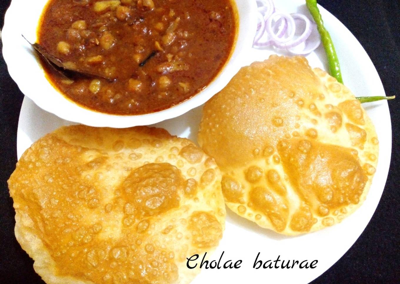 - Ready to serve the baturae with cholae,onion slices and chillies